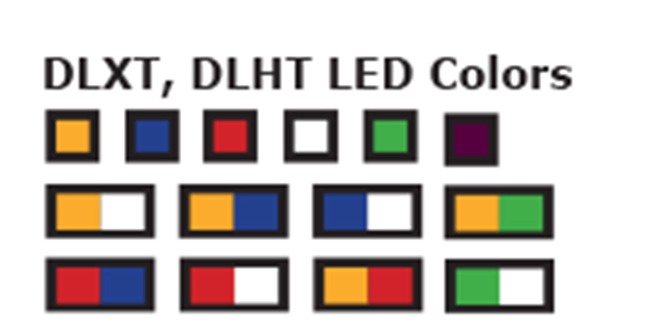 - DLXT Standard warning LED light, 10 different selectable flash patterns in either of two phases, plus steady-on